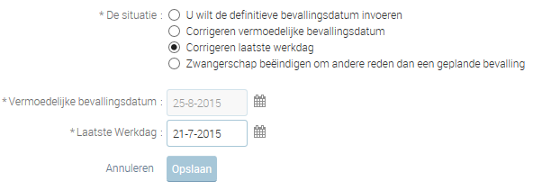 Stap 1: Corrigeren laatste werkdag voor het zwangerschapsverlof.