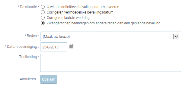 - Vul de datum in waarop de zwangerschap is beëindigd.