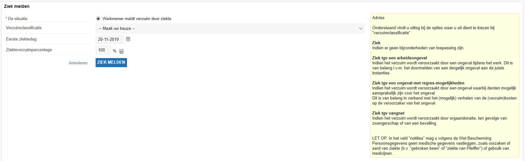 - Voer de ziekmelding in zoals beschreven in dit artikel: Verzuim registreren / Herstel registreren : othersideatwork (freshdesk.com) ;