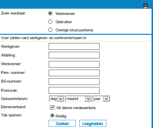 Zoeken op gebruikers zal in de regel meer voorkomen dan werknemers zoeken. Dit vanwege het feit dat de meeste ‘beheer’ mogelijkheden betreffende werknemers tegenwoordig ook in de front-end van VX gedaan kunnen worden.