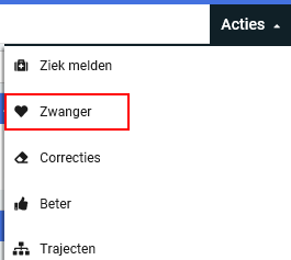Ga naar een werknemersdossier en kies bij de actieknop voor 'Zwanger'
